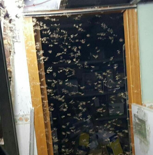 (3)在大雨來(lái)臨時(shí)或者悶熱天氣里,發(fā)現(xiàn)長(zhǎng)翅蟲子室內(nèi)成群飛翔;或在傍晚,發(fā)現(xiàn)有翅的蟲子在室內(nèi)燈下大量聚集飛翔。這說明屋中有蟻或是新蟻分飛進(jìn)屋。